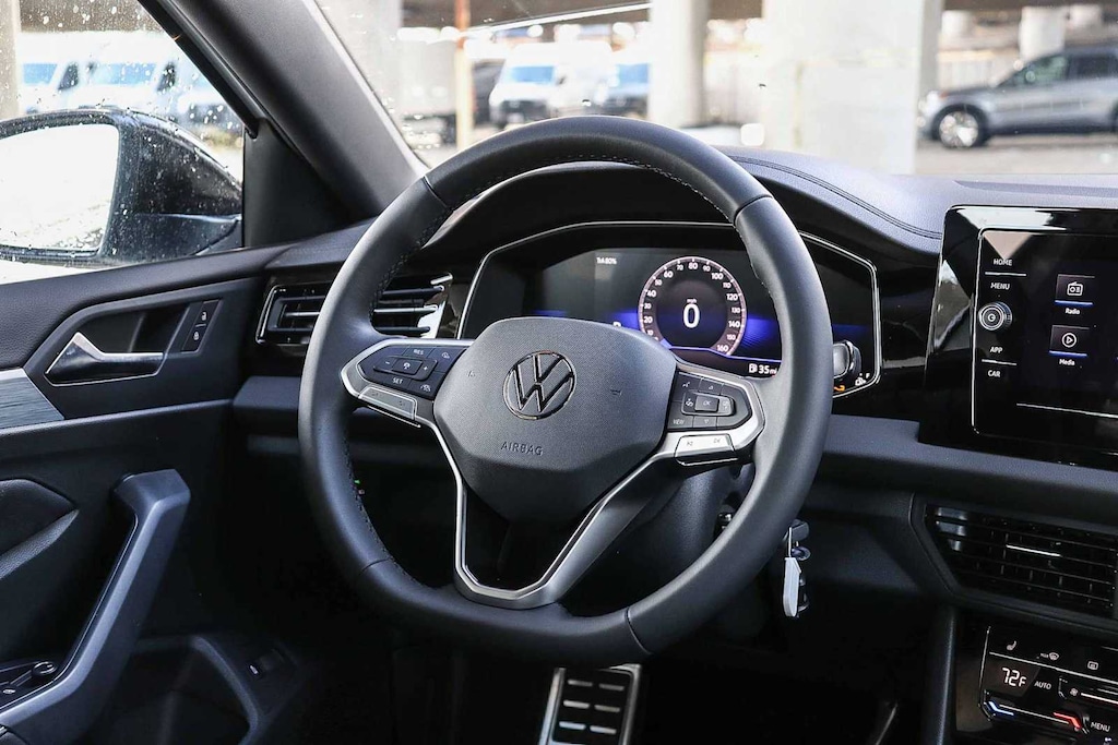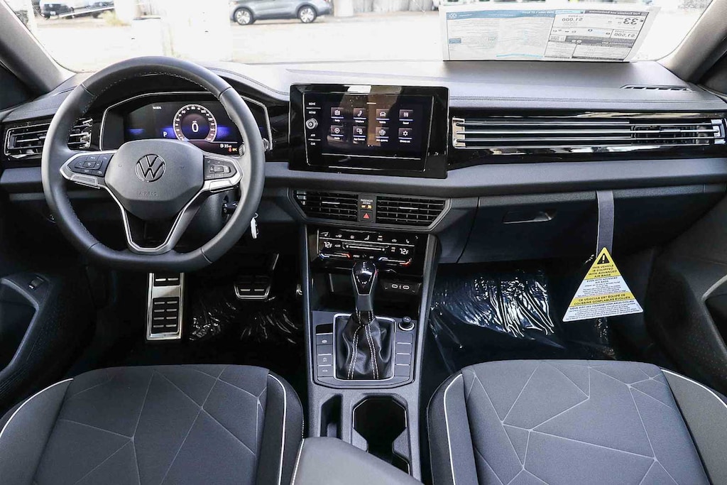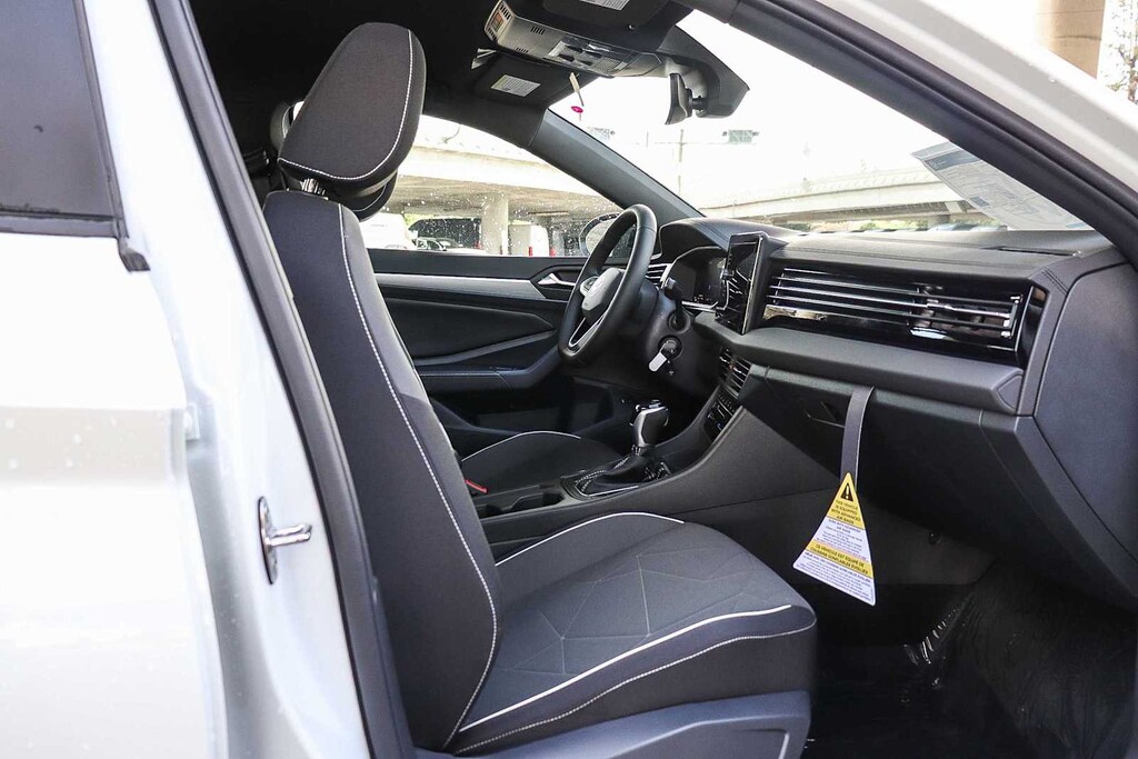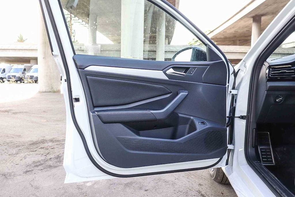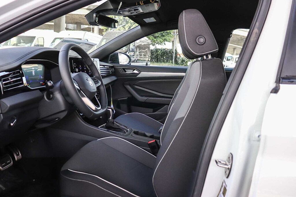 Jetta 1.5T Sport, sedán de 4 puertas, motor 1.5L I-4 DI DOHC turboalimentado, transmisión automática de 8 velocidades con Tiptronic, tracción delantera, Pure White, tapicería de tela Titan Black, 4 altavoces, asistencia de frenado, control electrónico de estabilidad, cámara de aparcamiento trasera, aire acondicionado de doble zona delantero, radio: Color MIB3 con pantalla táctil de 8 pulgadas, VW Care con servicio de 30 000 millas y llantas: aleación mecanizada de 17 pulgadas en dos tonos
