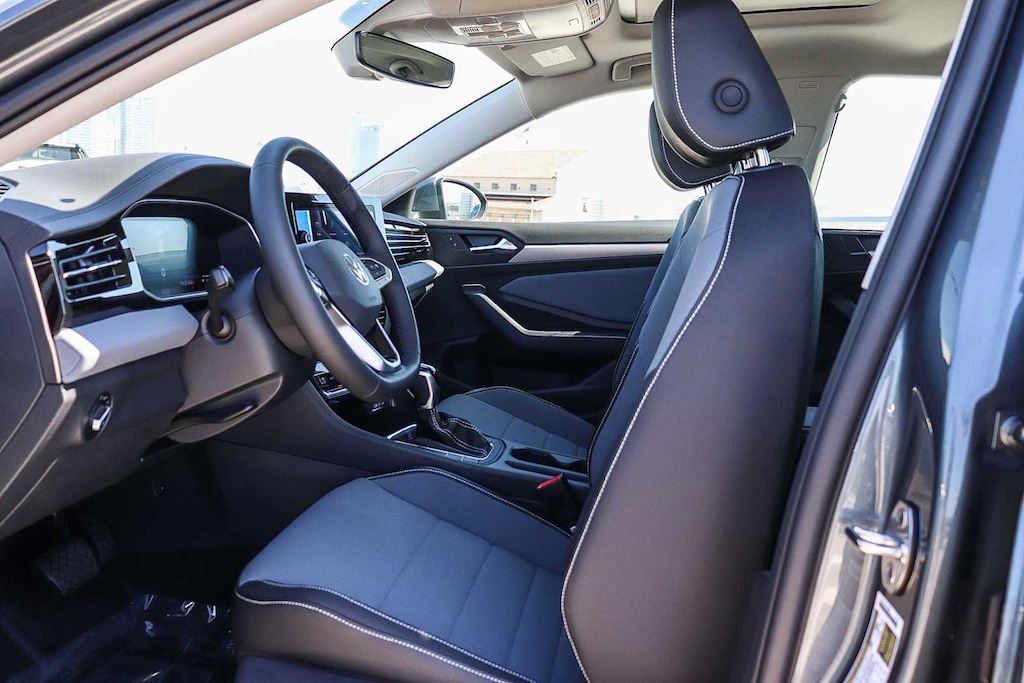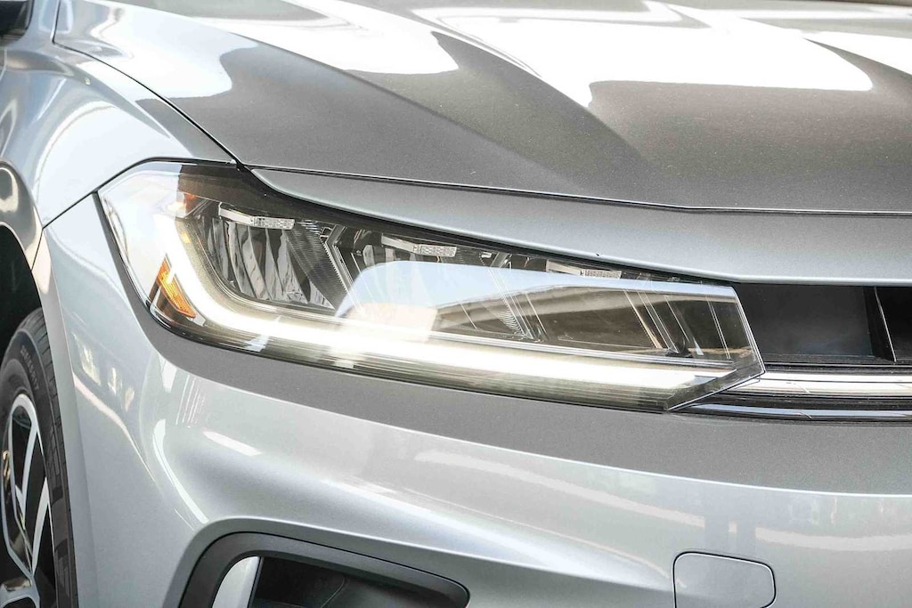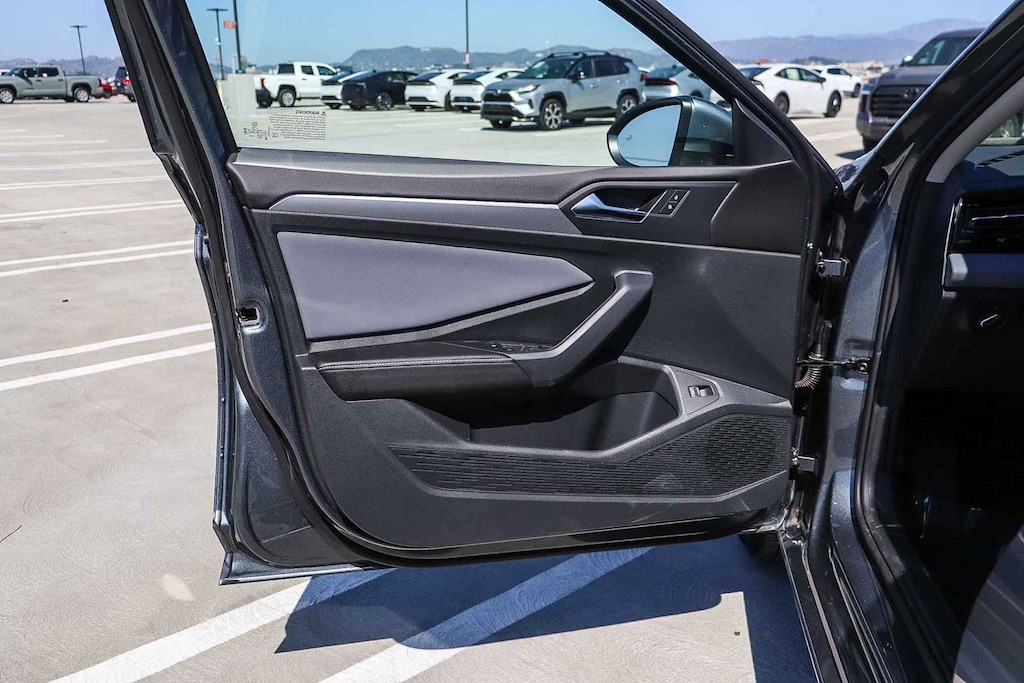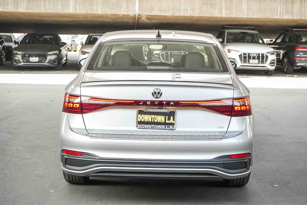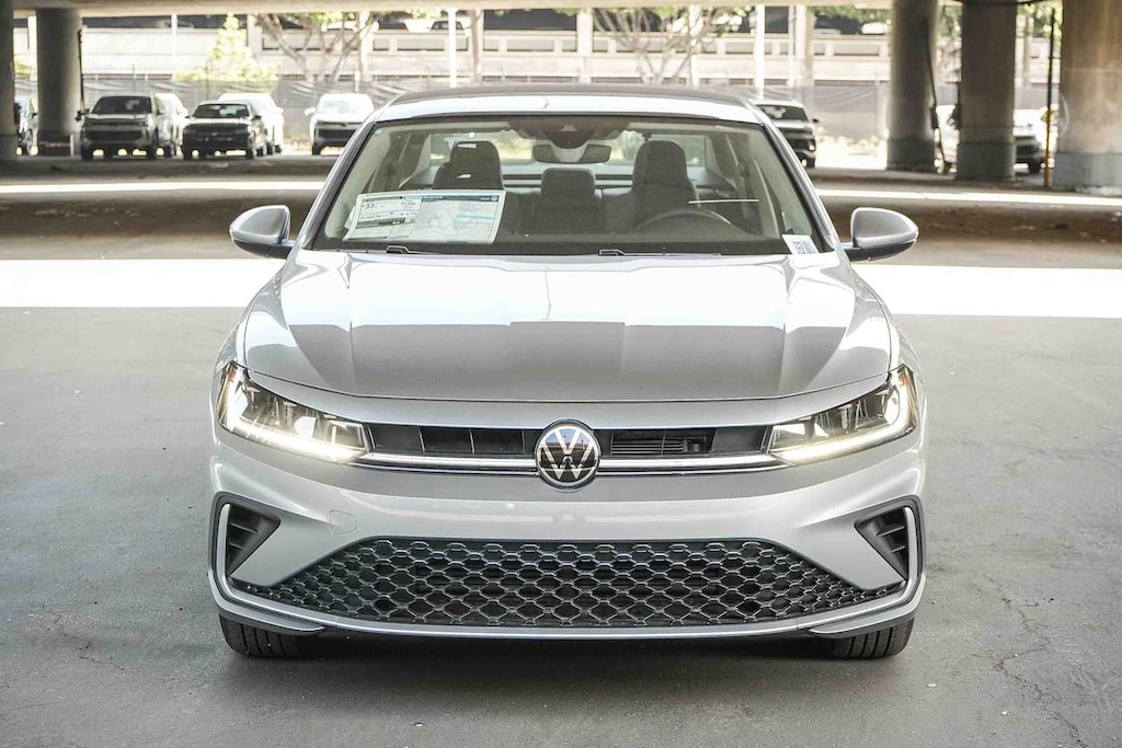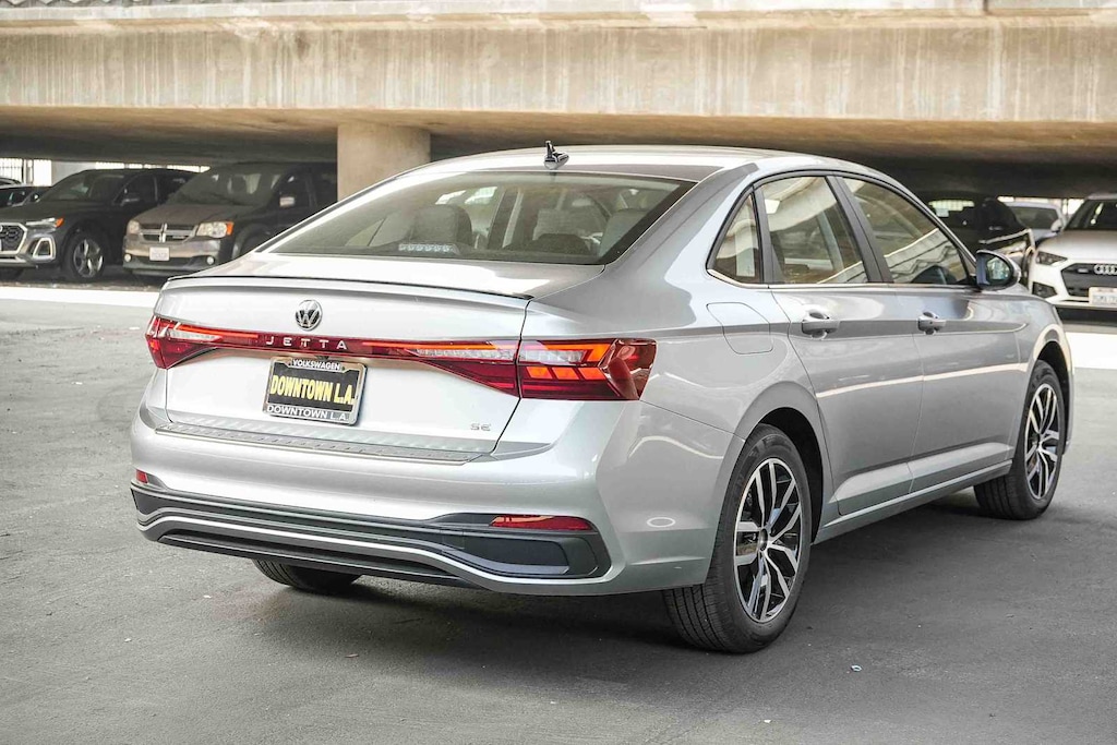 Jetta 1.5T SE, sedán de 4 puertas, motor 1.5L I-4 DI DOHC turboalimentado, transmisión automática de 8 velocidades con Tiptronic, tracción delantera, color plata, tapicería de cuero sintético en gris y negro, 6 altavoces, asientos del conductor y del acompañante con 8 posiciones de ajuste eléctrico, monitor activo de ángulo muerto, asistencia a la frenada, control electrónico de estabilidad, cámara de aparcamiento trasera, techo corredizo eléctrico: Panorámico, acceso sin llave con botón de arranque, VW Care con servicio de 30 000 millas y llantas: 17 pulgadas de aleación mecanizada de 5 radios dobles en dos tonos