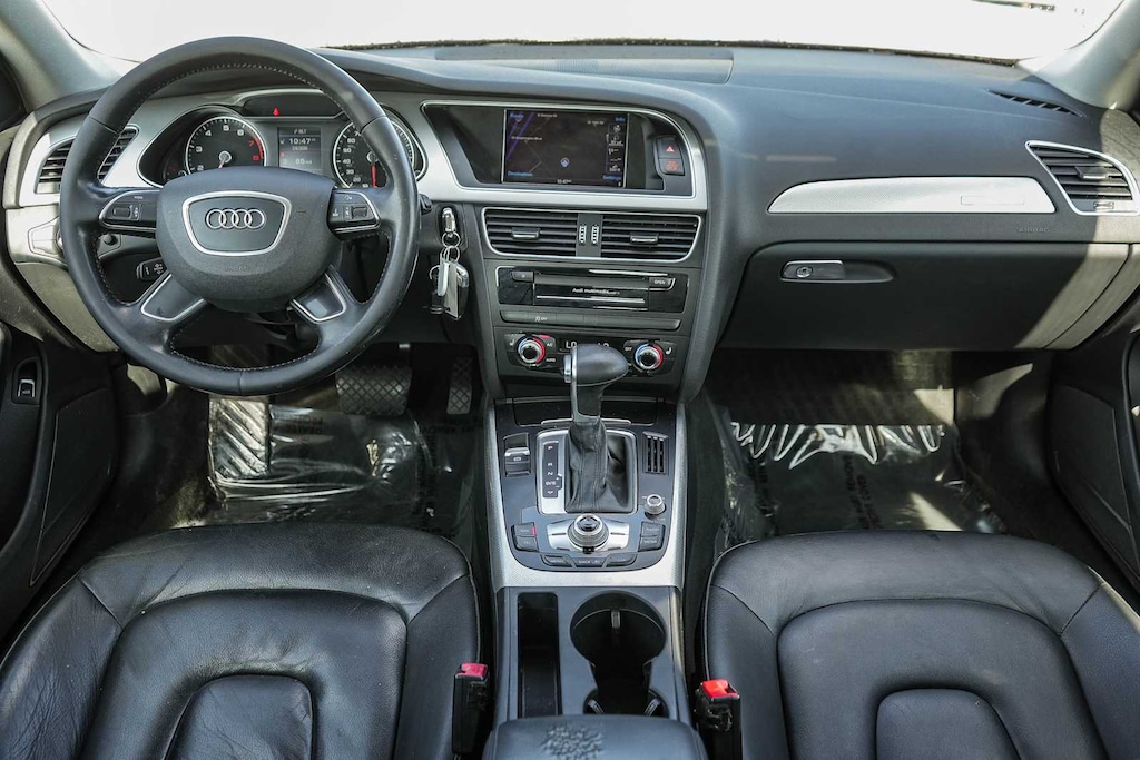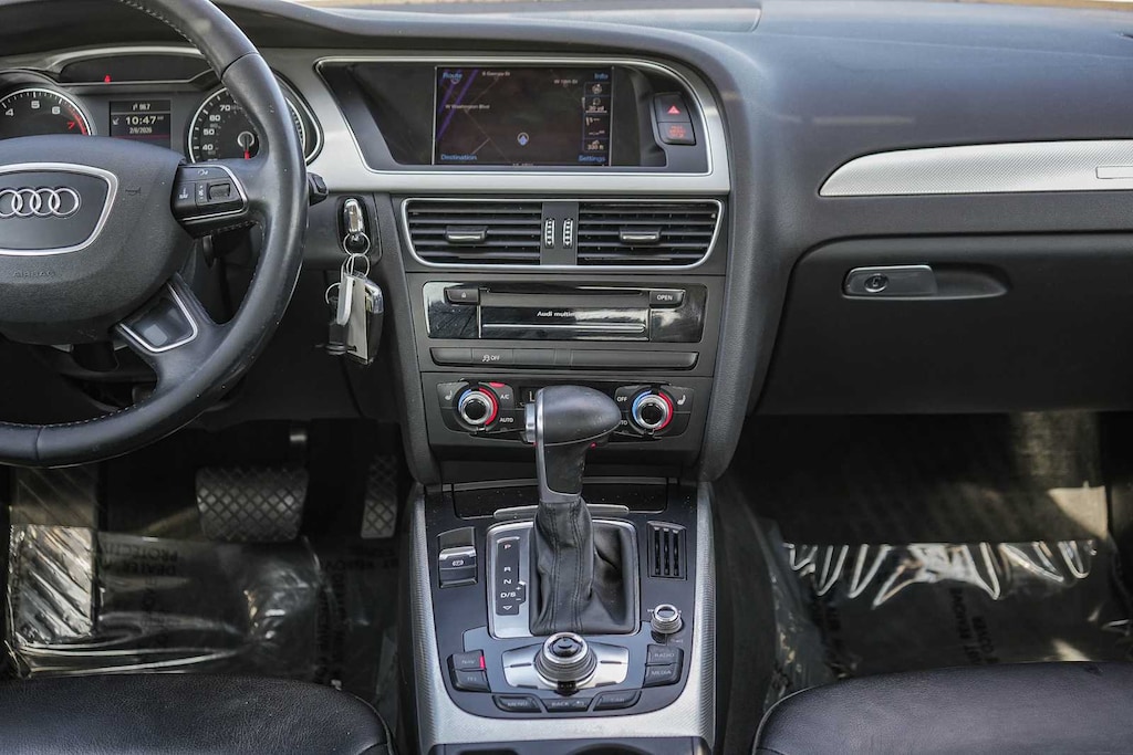 , navegación Audi MMI (sistema de información para el conductor en color, navegador HDD con control por voz y radio: reproductor de 1 CD/DVD y HD), A4 2.0T Premium quattro, sedán de 4 puertas, motor TFSI DOHC de 2,0 litros y 4 cilindros, transmisión automática de 8 velocidades con Tiptronic, tracción quattro, color Brilliant Black, tapicería de cuero negro, frenos de disco en las 4 ruedas, llantas de 8,0J x 17 con diseño de estrella de 10 radios, asistencia de frenado, control electrónico de estabilidad, paquete de techo solar panorámico, barra estabilizadora trasera y luces antiniebla traseras